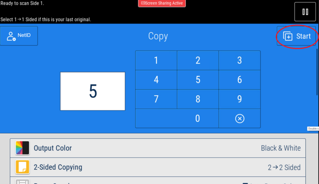 Modify the specifications and number of copies. Click 'Start' once ready